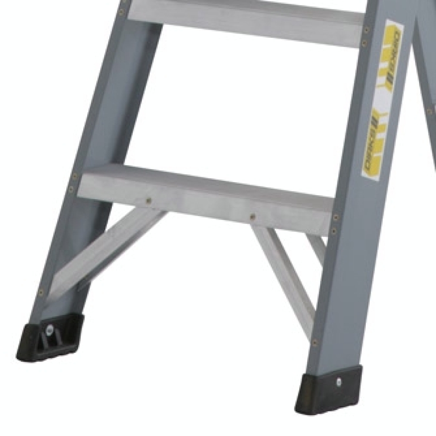 De dubbele trap met kniebeugel is een door Dirks gefabriceerde trap en uitermate geschikt voor gebruik in onder andere de branches: bouw & industrie, schilder en schoonmaak. Deze trap is zowel ongecoat als gecoat beschikbaar waardoor voor iedere doelgroep de juiste keuze gemaakt kan worden.